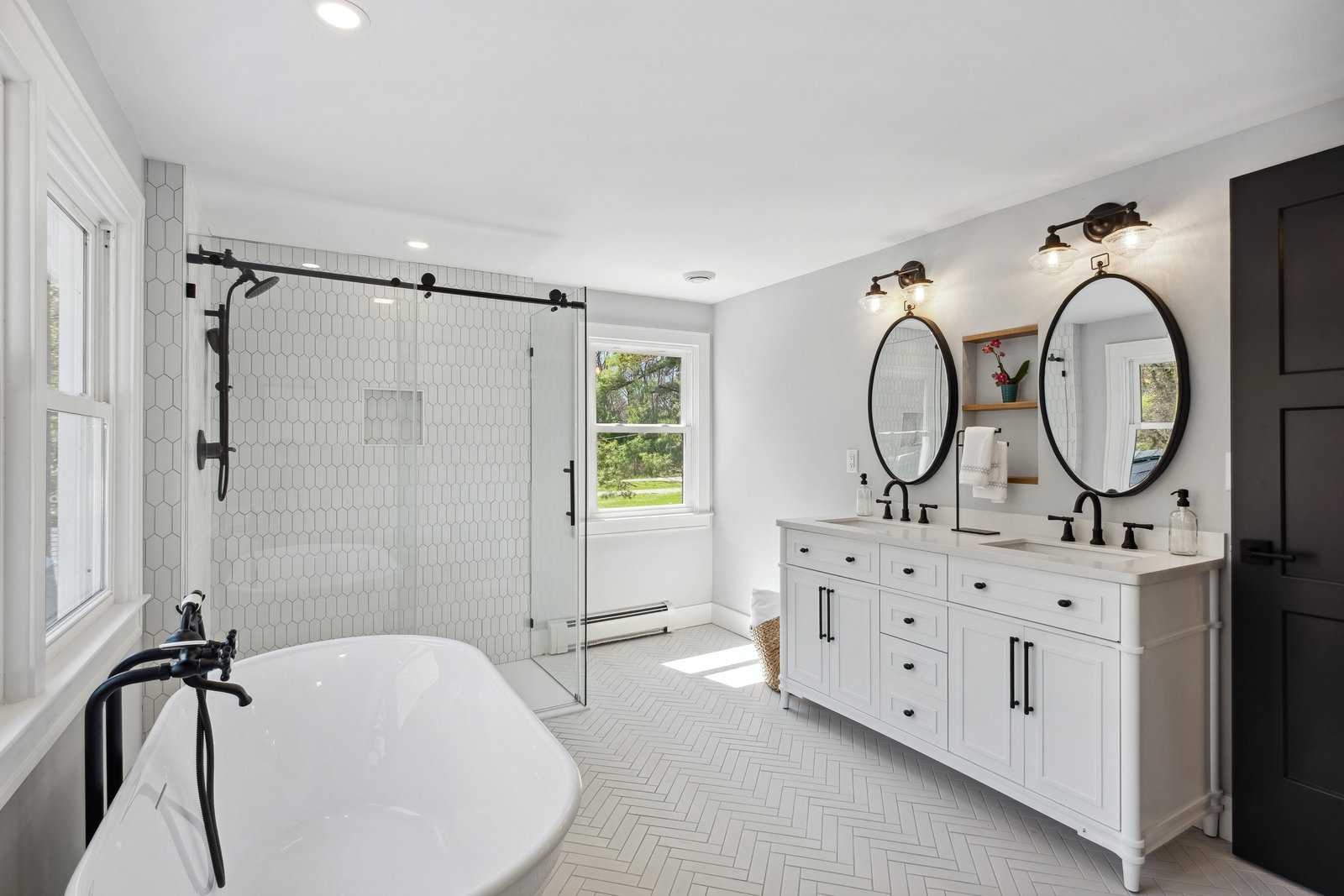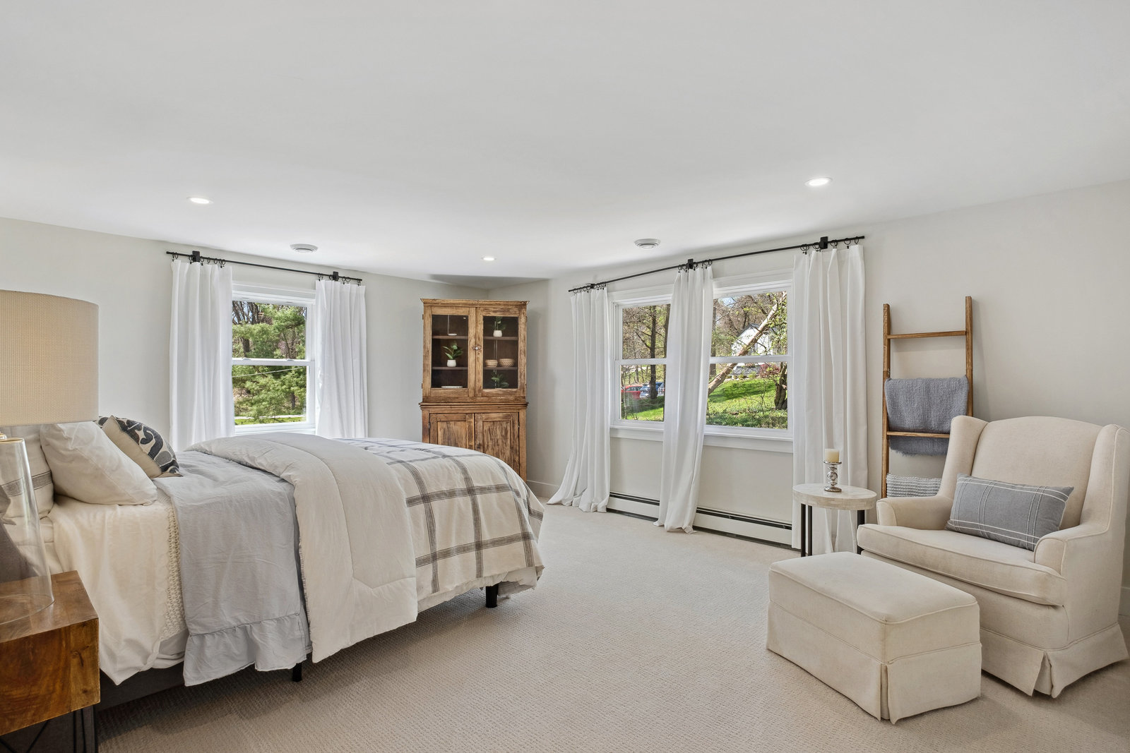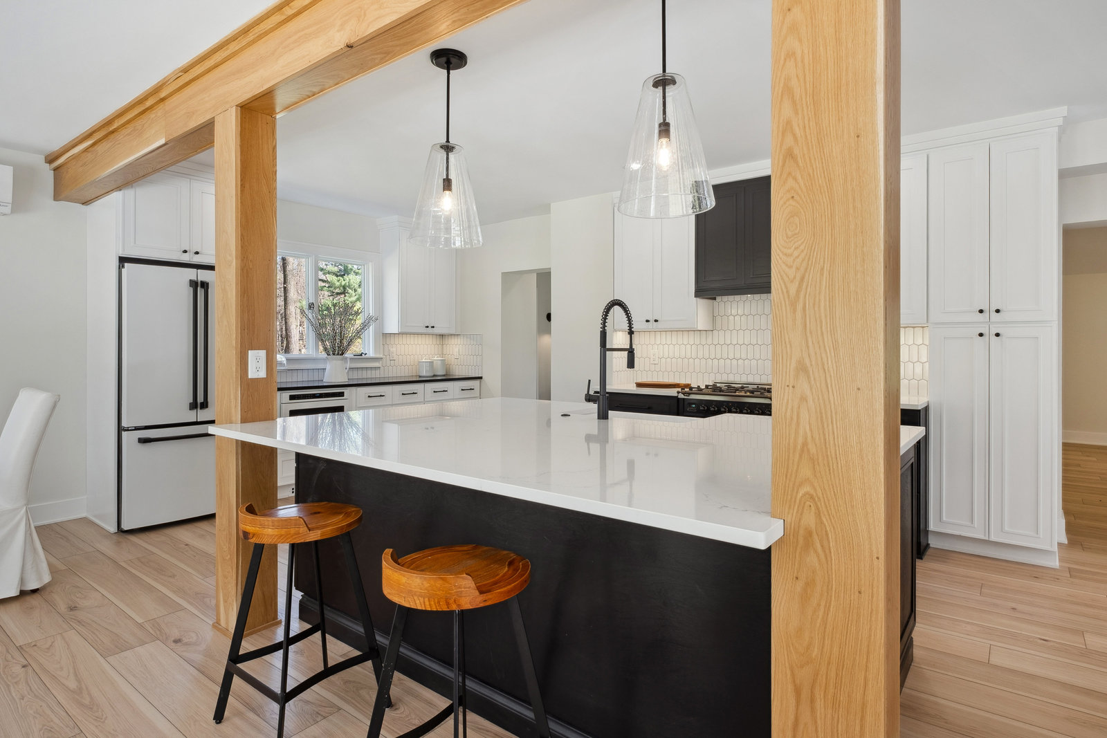 The house features three bedrooms and three newly renovated bathrooms. The primary ensuite offers a beautifully appointed bath with soaking tub, tiled walk-in shower and closet. The home is equipped with brand new heating and cooling systems for optimal year-round comfort.